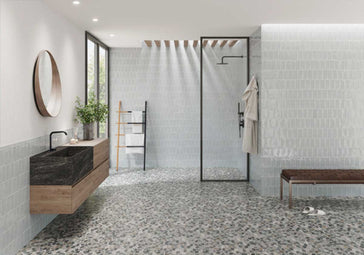 Mosaic Marble Tile Pebbles Leaves Series - Blue Atlas
