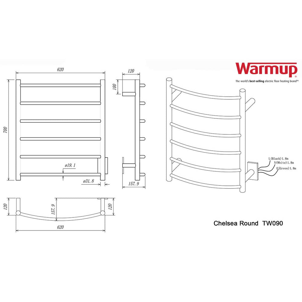 WarmUp Electric Towel Warmers Chelsea Curve n Round - TW090 PC
