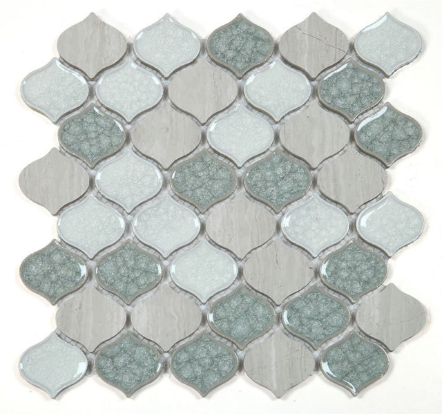 Mosaic Crackle Glass Tile Arabesque Shape - Sea Green