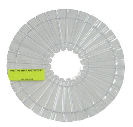 This Patented clear plastic ring is designed to keep mortar from the weep holes in a drain. The ridges allow for water to flow underneath the mortar and into the weep holes.