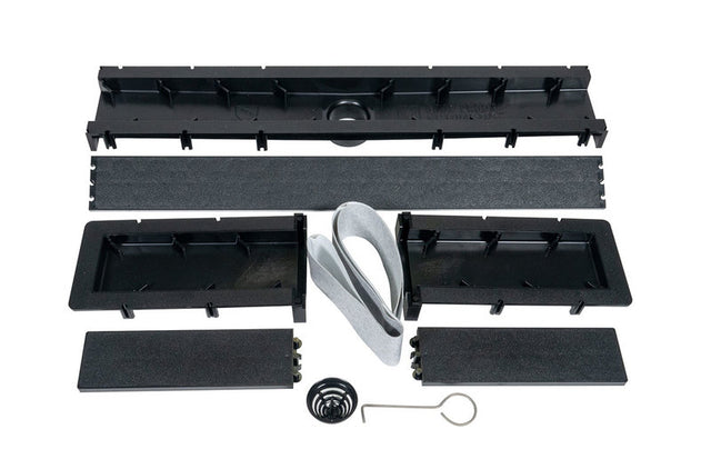 Customization to 6 length combinations ranging from 27" to 60" Tileable insert top (no metal grates available) with female receivers to attach Quick Pitch Float Sticks directly to the drain. Can be used with any waterproofing method including Roll on, Vinyl, and Sheet Membrane. Install with or without a curb to create a barrier free shower.