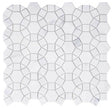 White Calacatta Marble in Circle Shape, squares and triangles to form a circular pattern.. This Mosaic comes in a Polished finish.