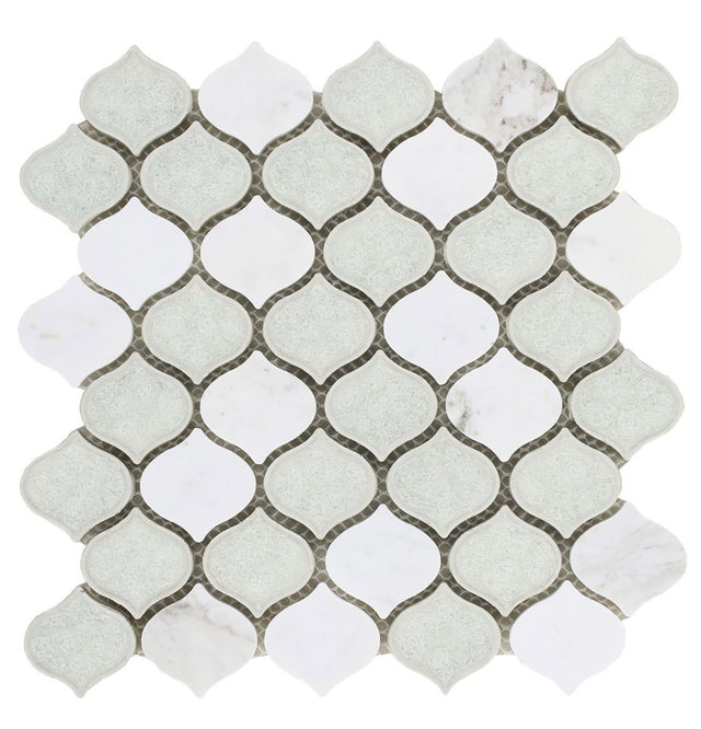 Mosaic Crackle Glass and Marble Tile Arabesque Shape - Carrara