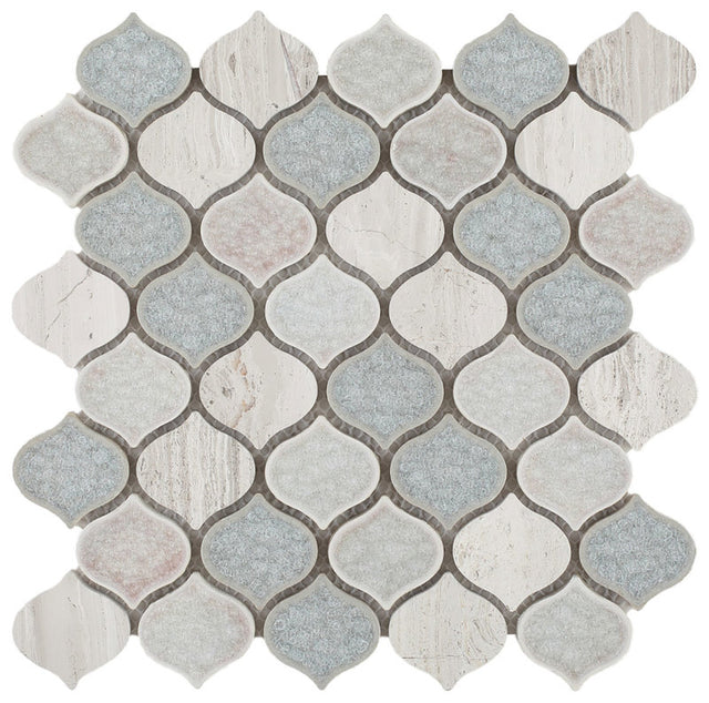 Mosaic Crackle Glass and Marble Tile Arabesque Shape - Light Purple