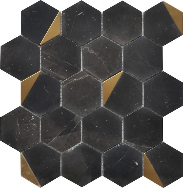 Mosaic Hexagon Nero Marquina Marble with Metal - Black Gold