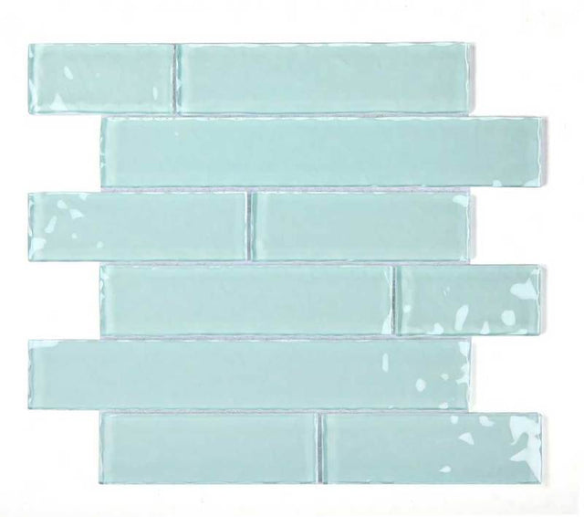 Glass Tiles Soft, polished, Blue Green colored glass in subway layout 2" x 6" on 11 3/4" x 11 3/4 sheet