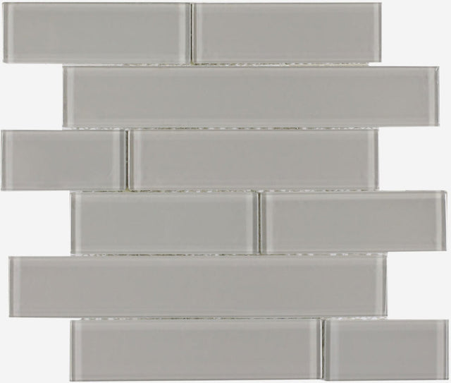 Glass Tiles Soft, polished, Grey Shining colored glass in subway layout 2" x 6" on 11 3/4" x 11 3/4 sheet