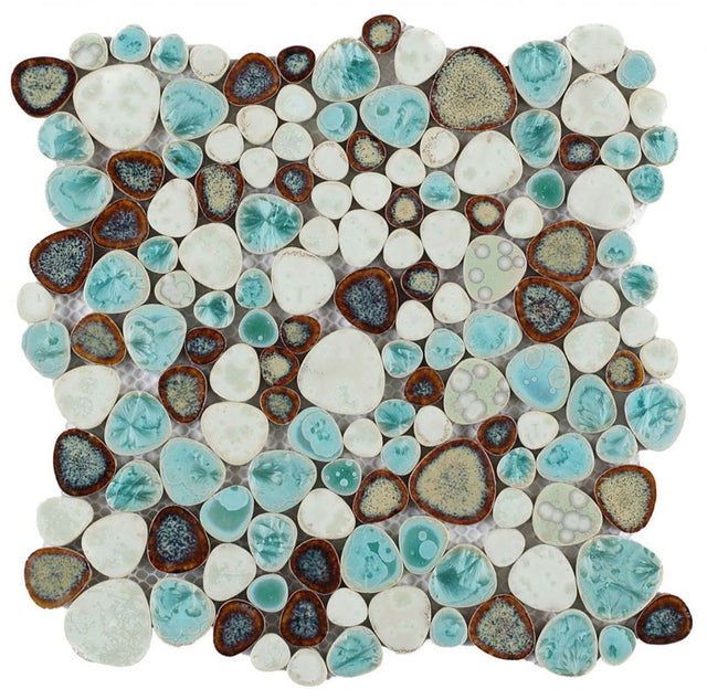 Mosaic Porcelain Tile Mancala Pebble Series - Green Leaf