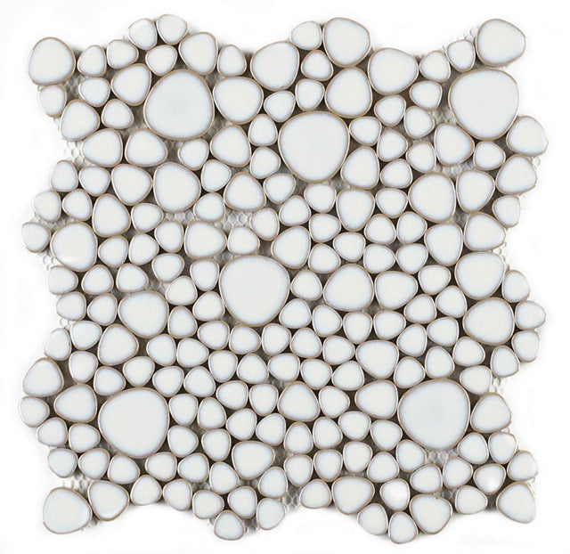 Mosaic Porcelain Tile Mancala Pebble Series - Snow White