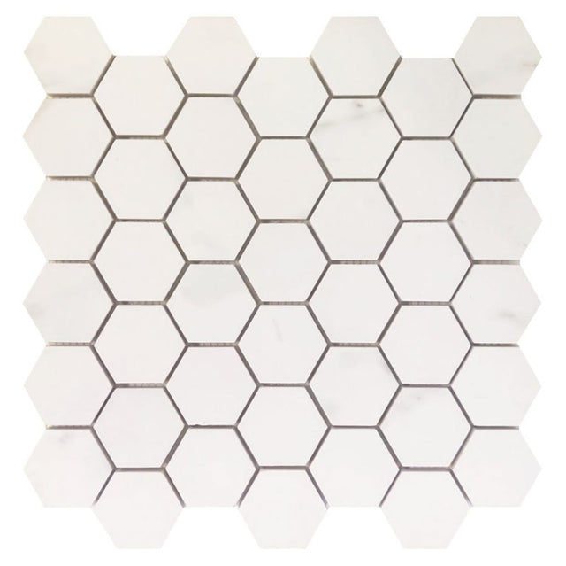 Mosaic Rectified Italian Porcelain Calacatta Hexagon - White