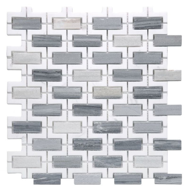 Mix of Palissandro Blue and Volakas marble to form a hollow brick pattern