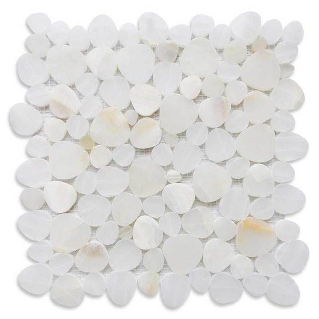 Onyx White Honed 12 x 12 - Pebble style mosaic made of White Onyx in heart-shaped mosaic