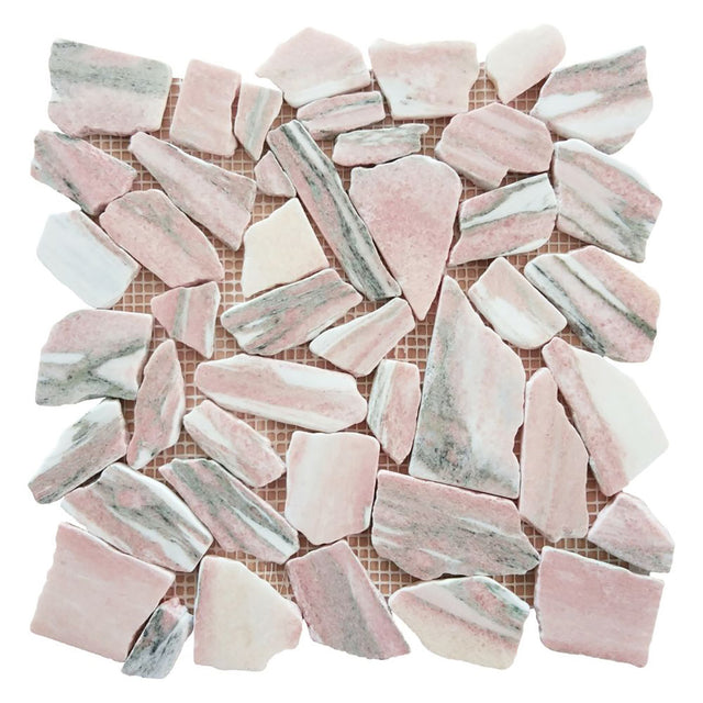 Mosaics Pebble Marble Thassos and Caribe Quartzite - Rose