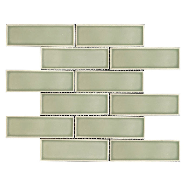 Mosaic tile made from 100% recycled glass powder sourced from used windows. A new glass firing technology mixes glass power and glaze color and fires the tile at over 2000 degrees F. The tile is acid and alkaline resistant and can be cleaned with any detergent. No sealing is required. A white modified thinset is recommended.