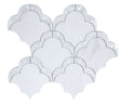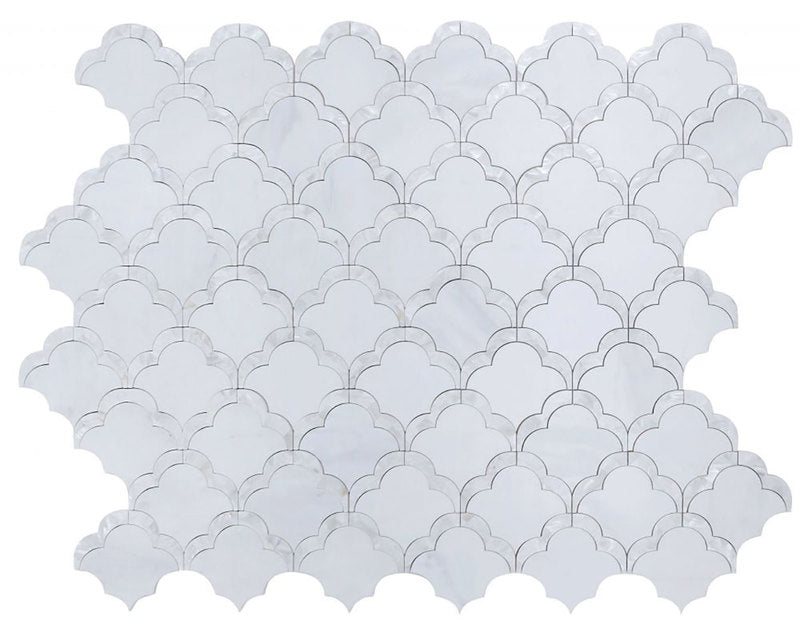 White marble and Mother-of-Pearl mix to form an artistic scale-like pattern.