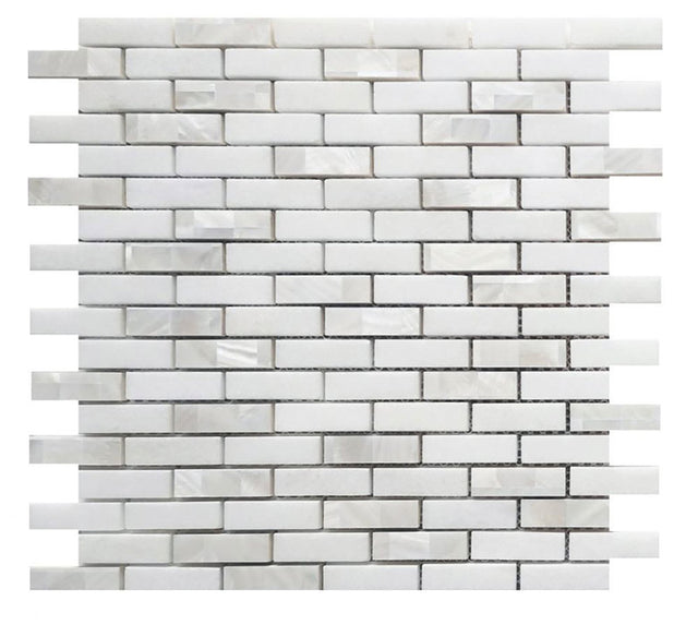Thassos marble and pearl in linear, stacked pattern