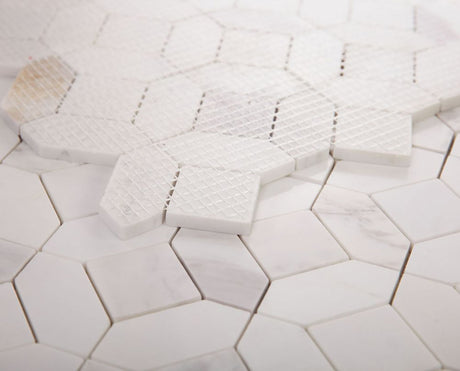 $4750Unit price /UnavailableMosaic Rectified Porcelain Calacatta Hexagon - Soft White
