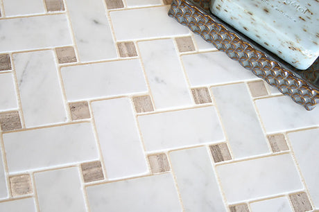 $4800Unit price /UnavailableArabesque Carrara Honed and Glass - Carrara Blend