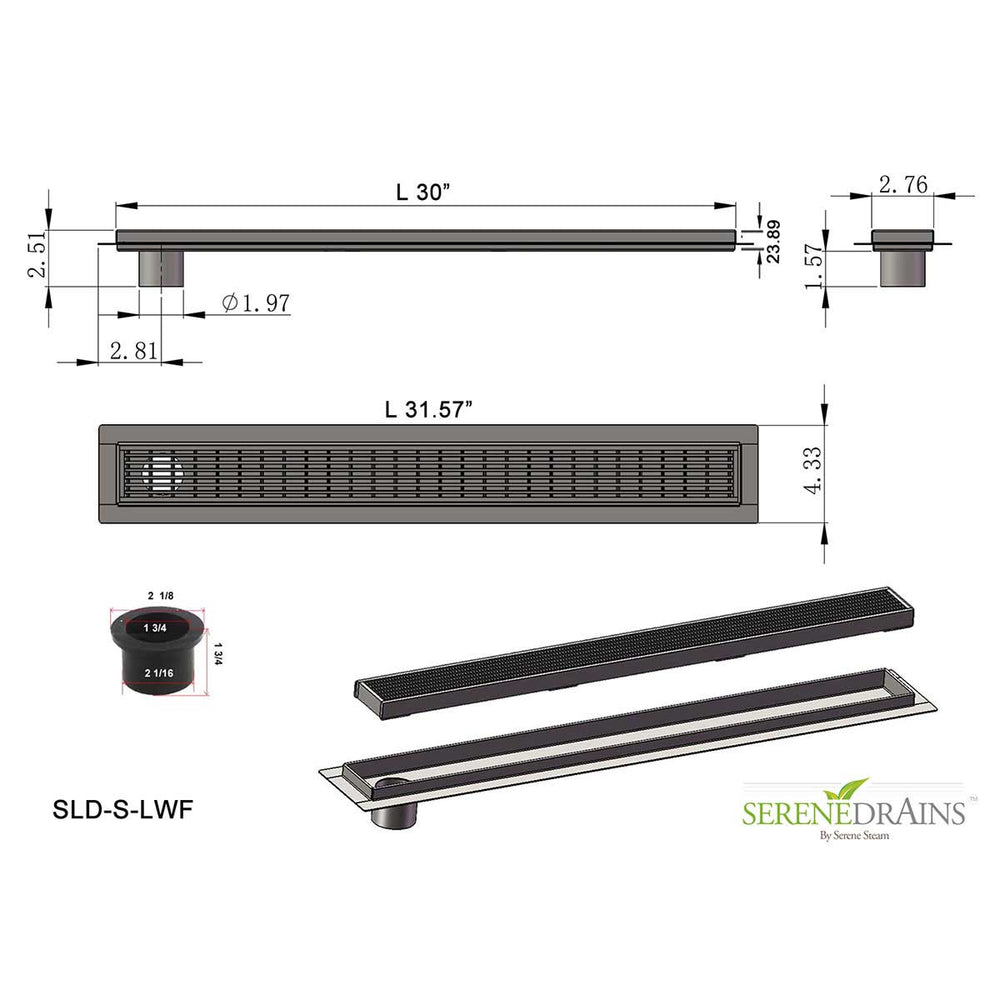 SereneDrains Linear Shower Drain Offset Outlet Linear Wedge - 30