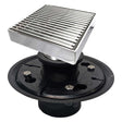 Complete Set: Square Shower Drain Grate and Body, Drain Base, Threaded Plastic Fitting and Lifting hook.
