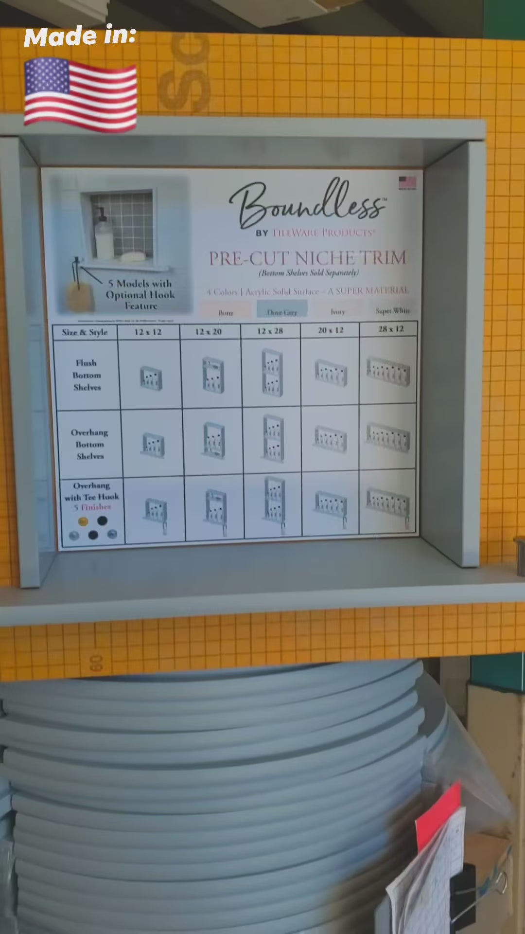 The Tileware Boundless Pre-drilled Overhang Bottom Niche Trim combines elegant design with built-in functionality. Crafted from durable acrylic solid surface and available in multiple colors, this trim piece creates a clean overhang finish for tiled shower niches while providing pre-drilled slots for Tileware Tee Hooks.