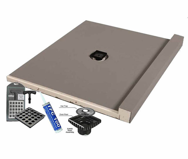 • 1 ProPan Base • 1 x 66" ProPan Curb • 1 Ebbe Square Drain • 1 x 10.3 oz Polyurethane Sealant • Ebbe Drain Hair Trap