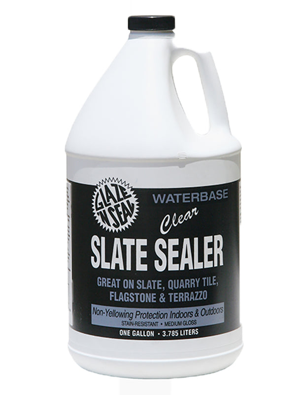 A clear acrylic water base finish designed to protect and beautify slate, flagstone and quarry tile. Glaze ’N Seal Slate Sealer protects against all organic stains including cooking oil, grease and beverages. It may be used indoors or outdoors and is extremely easy to apply and maintain.
