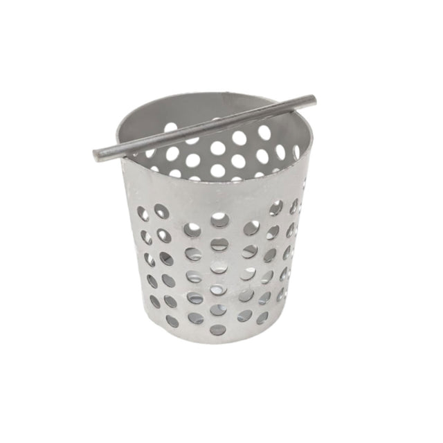 A stainless steel strainer that sits inside the 2" diameter outlet to collect hair and debris.