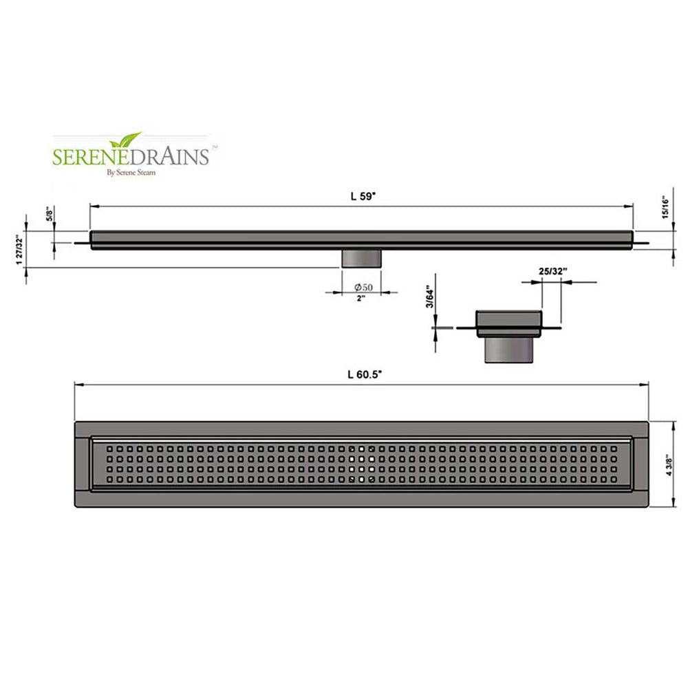 SereneDrains Linear Shower Drain Traditional Square - Brushed Stainless 59