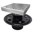 Complete Set: Square Shower Drain Grate and Body, Drain Base, Threaded Plastic Fitting and Lifting hook.