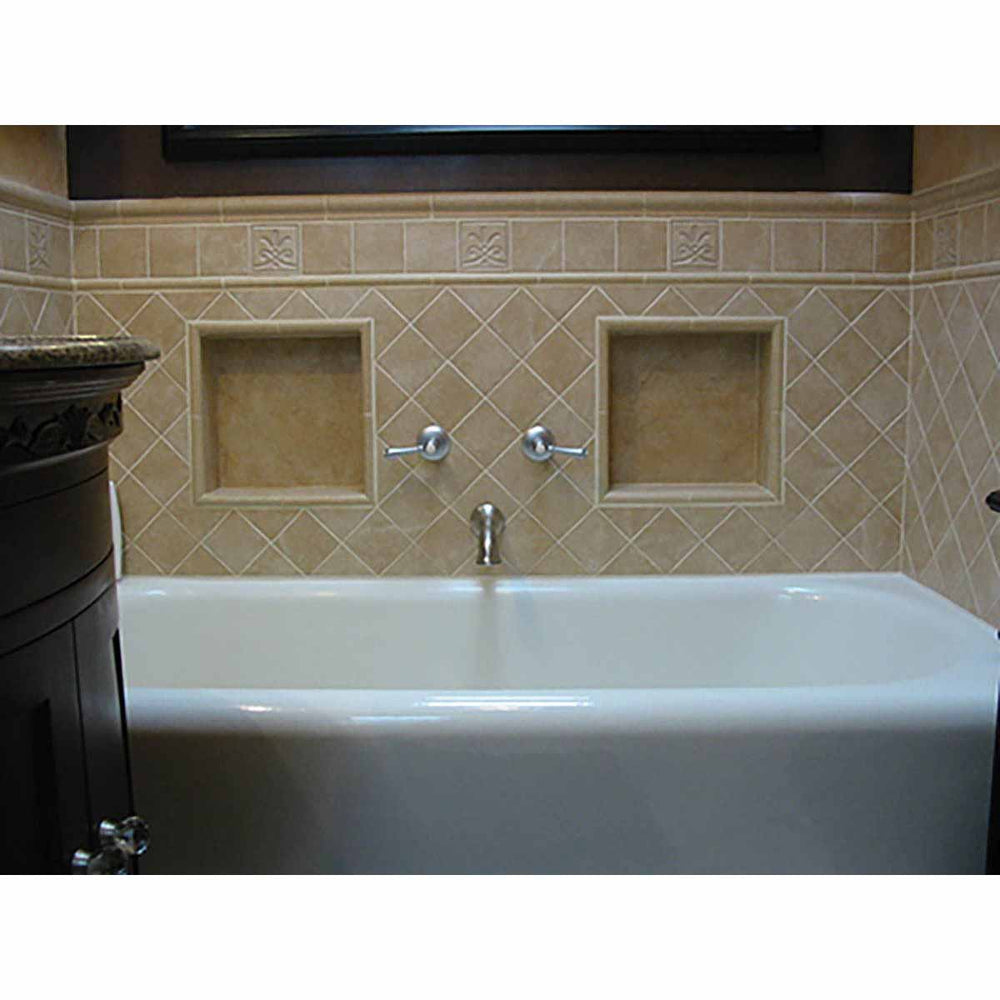 The Floating Shelf unit is sized to fit within the grout joint of the vertical wall tile placed inside the Recess-It unit. This allows the installer to align the shelf with the existing layout of the wall tile without compromise, time consuming tile cutes, or layout issues.