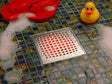 Water activated LED lights Illumination is possible for both standard and custom shower channels. The illumination is based on simple circuit completion: as sufficient water runs over the LED light packs the circuit connects the contacts of the LED light modules and the lights turn on. When the water stops running the illumination switches off. Allowing a daily showering duration of 15 minutes, batteries would need to be recharged after approx. three months.