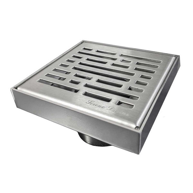 The SereneDrains Square Shower Drain with a Broken Lane style in Brushed stainless steel is a visually striking and stylish choice for your shower. With its square shape and Broken Lane pattern, it adds a unique and eye-catching element to your bathroom design.