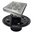 Complete Set: Square Shower Drain Grate and Body, Drain Base, Threaded Plastic Fitting and Lifting hook.