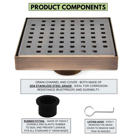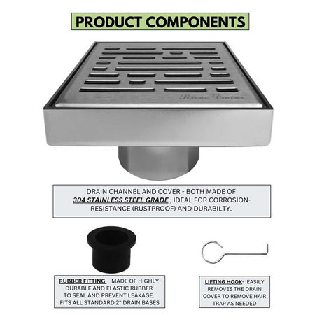 From $11900Unit price /UnavailableSereneDrains Square Shower Drain Traditional Square 6 PC