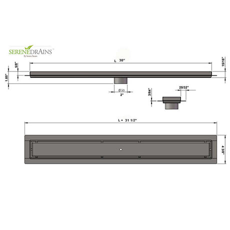 From $24900Unit price /UnavailableSereneDrains Linear Shower Drain Tile Insert Brushed Nickel 30