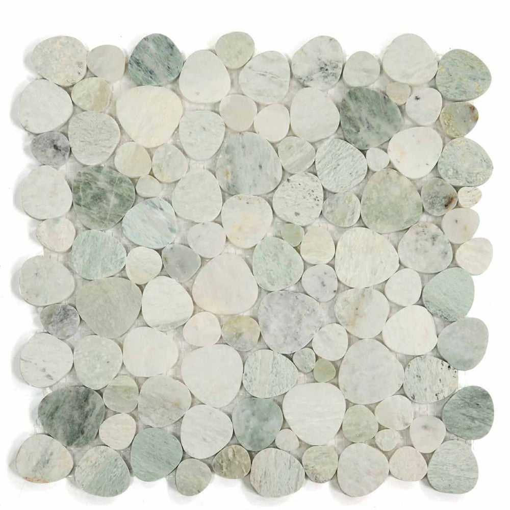 - Apply glass mosaic sheets, mesh -side down, firmly into freshly laid setting material. Mix and match from assorted sell units to achieve consistent variation. Using a rubber grout float gently press the tile into adhesive to ensure complete contact.