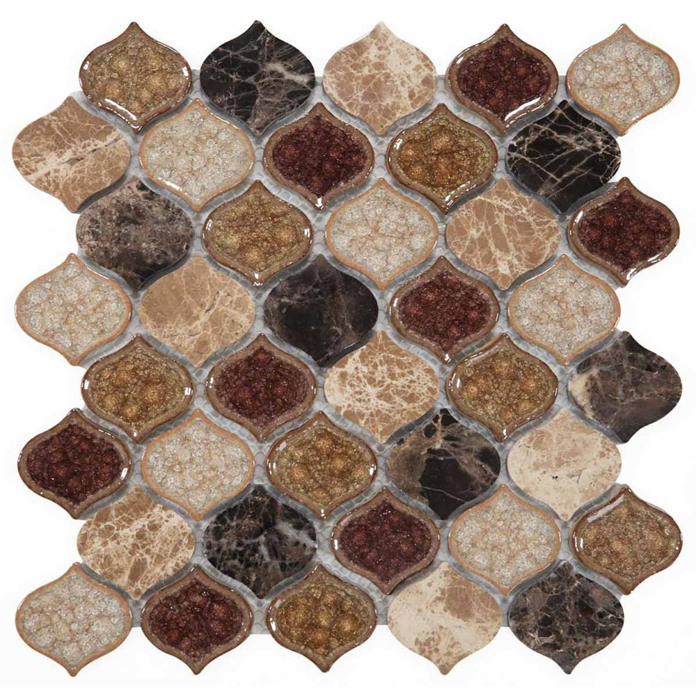 Mosaic Crackle Glass and Marble Tile Arabesque Shape - Cappuccino