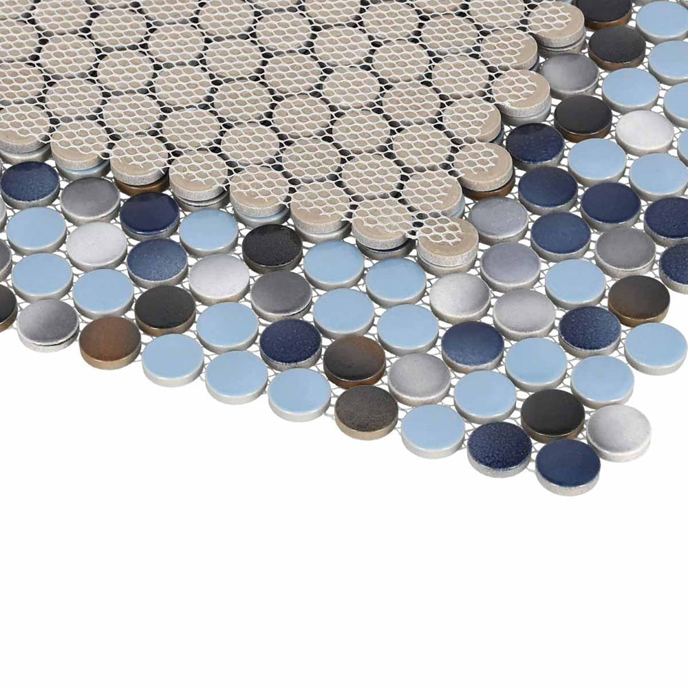 Mosaic Porcelain Penny Round - Blue Grey Brown