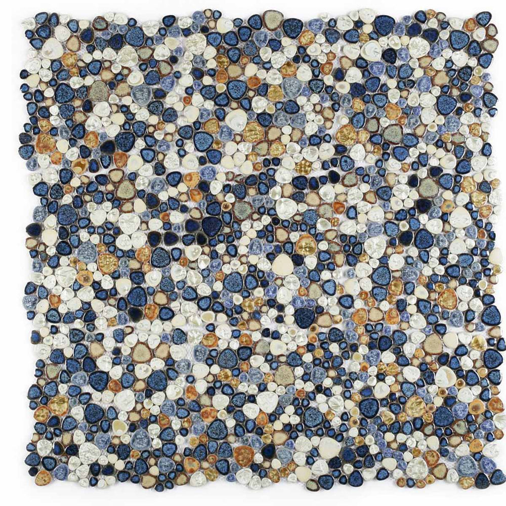 Mosaic Porcelain Tile Mancala Pebble Series - Blue Rust
