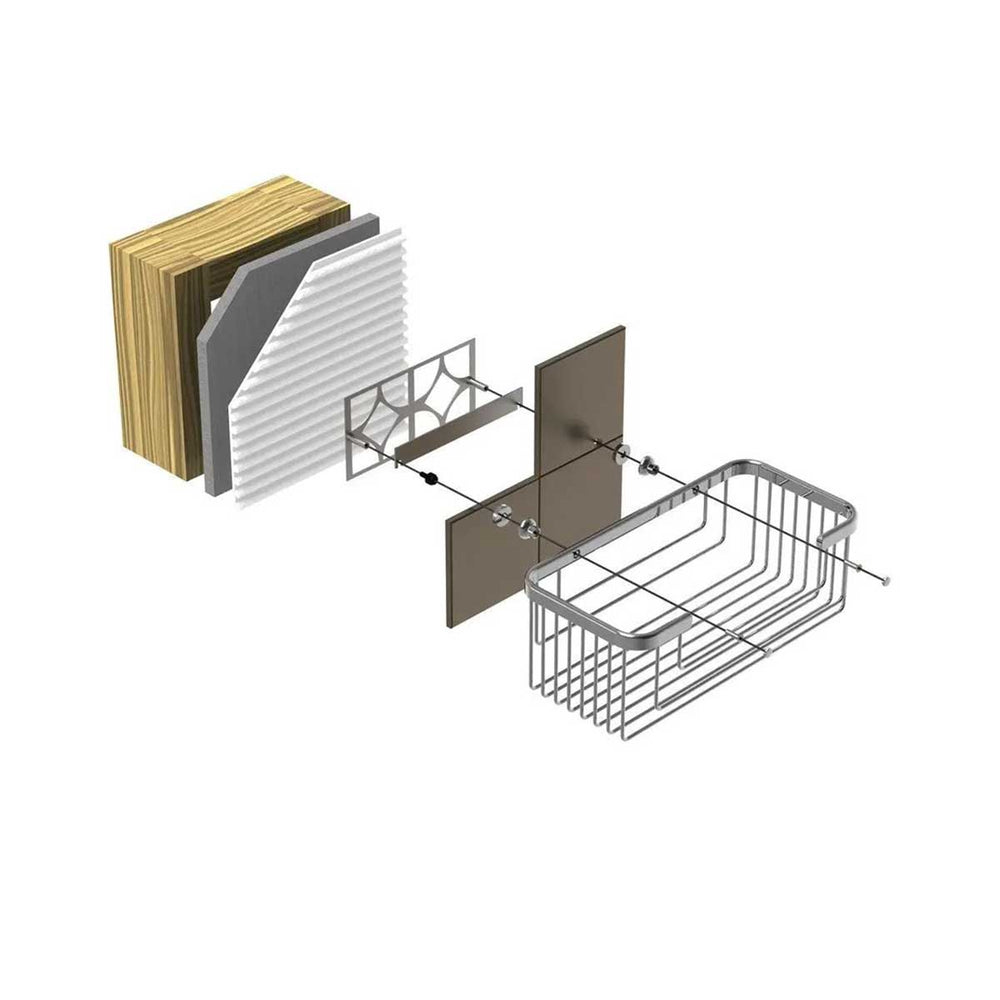 Observe this unique location for basket accessories. You can now position a basket right above or below the shower and trim and not ever puncture the plumbing. WOW! Experience this new exclusive value for tile professionals.