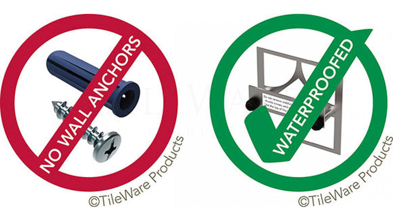 • Eliminates failures resulting from drilling into completed tile work - such as puncturing waterproofing, tile breakage, plumbing and wiring intrusions