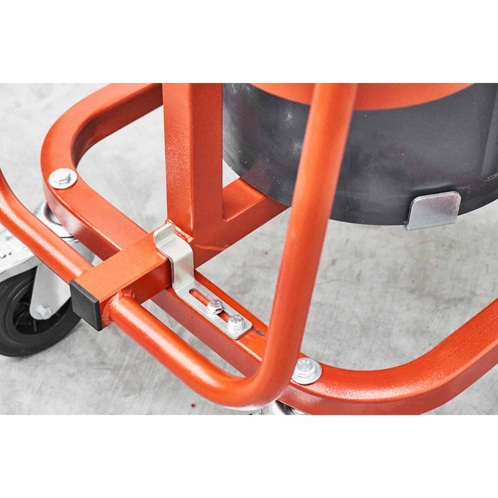• Swivel wheels and inclinable bucket which allows to pour the mixture uniformly.