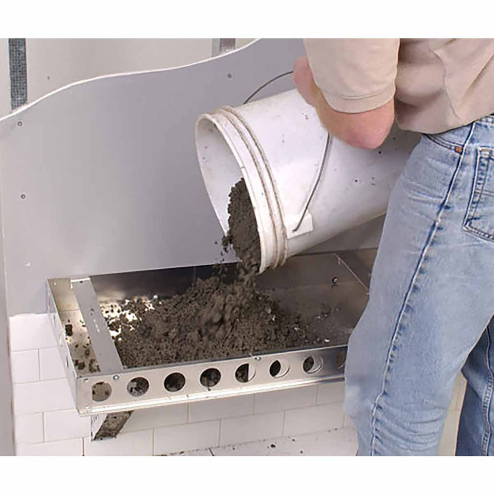 Then what? Fill the entire bench with the mortar, and pack it tight as you go with a wood float, block of wood or even a steel trowel. Make sure the material is in all corners completely. Allow the mortar to build up about 1/4 – 3/8 of an inch along the back wall(s) of the unit and screed it flush to the front lip to provide adequate drainage of the horizontal surface (this is not necessary in “dry” areas). Then add a small amount of water to the remaining mix to make it a little bit stickier. You will then apply this mix to the front face and screed it flush with the top and bottom edge of the channel. allow the unit to set sufficiently prior to beginning your tile process.