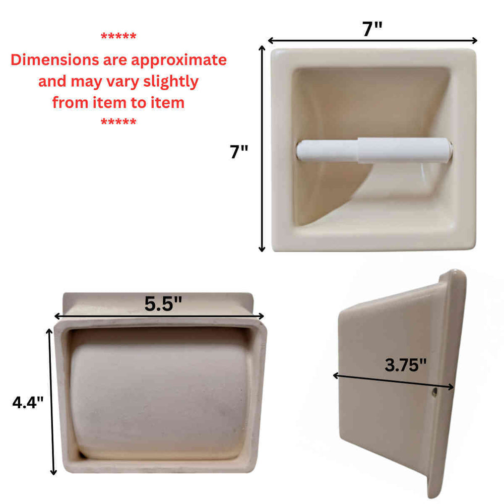 SereneDrains Ceramic Recessed Toilet Paper Holder Stone 7x7 Niche Bathroom Tissue Roll