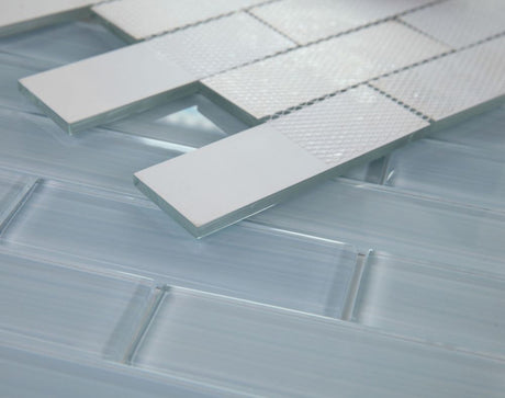 $4995Unit price /UnavailableMosaic Linear Glass Tiles Silver White 2 x 6