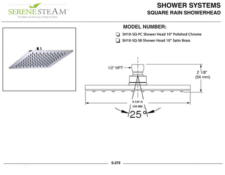 $2,19900Unit price /UnavailableUltra-Thin Square Rain Shower Head 10 inch by Serene Steam