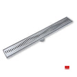 Channels and gratings are electropolished. This process creates a shiny defect-free surface which minimizes cleaning and maintenance for a high class finish. The textured appearance of the grate is still visible after electro-polishing and helps reduce the appearance of finger prints and soap residue.