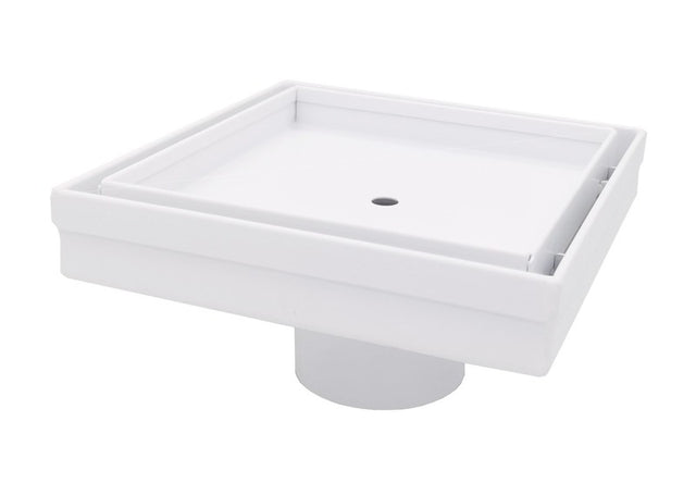 The SereneDrains Square Shower Drain Tile Insert in Matte White stainless steel combines functionality with a modern and visually appealing design. It offers efficient water drainage, while its square shape and Matte White finish add a touch of sophistication to your shower floor. Elevate your shower experience with this reliable and visually striking square shower drain.